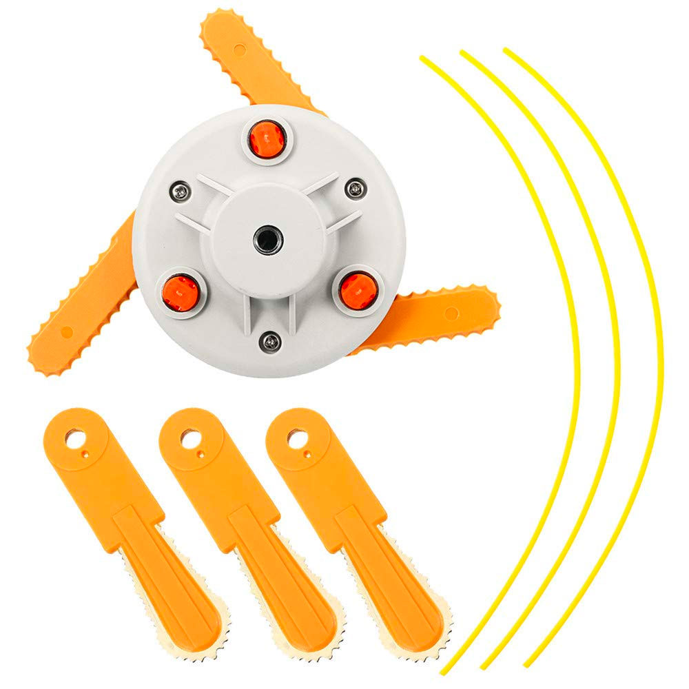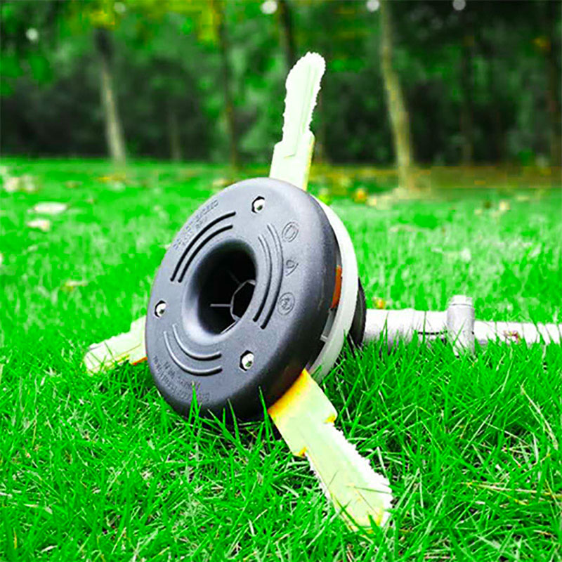 Лучшая триммерная головка. В комплекте ножи пластик из толстого пластика + пластик с металлическими зубьями + три штуки лески.