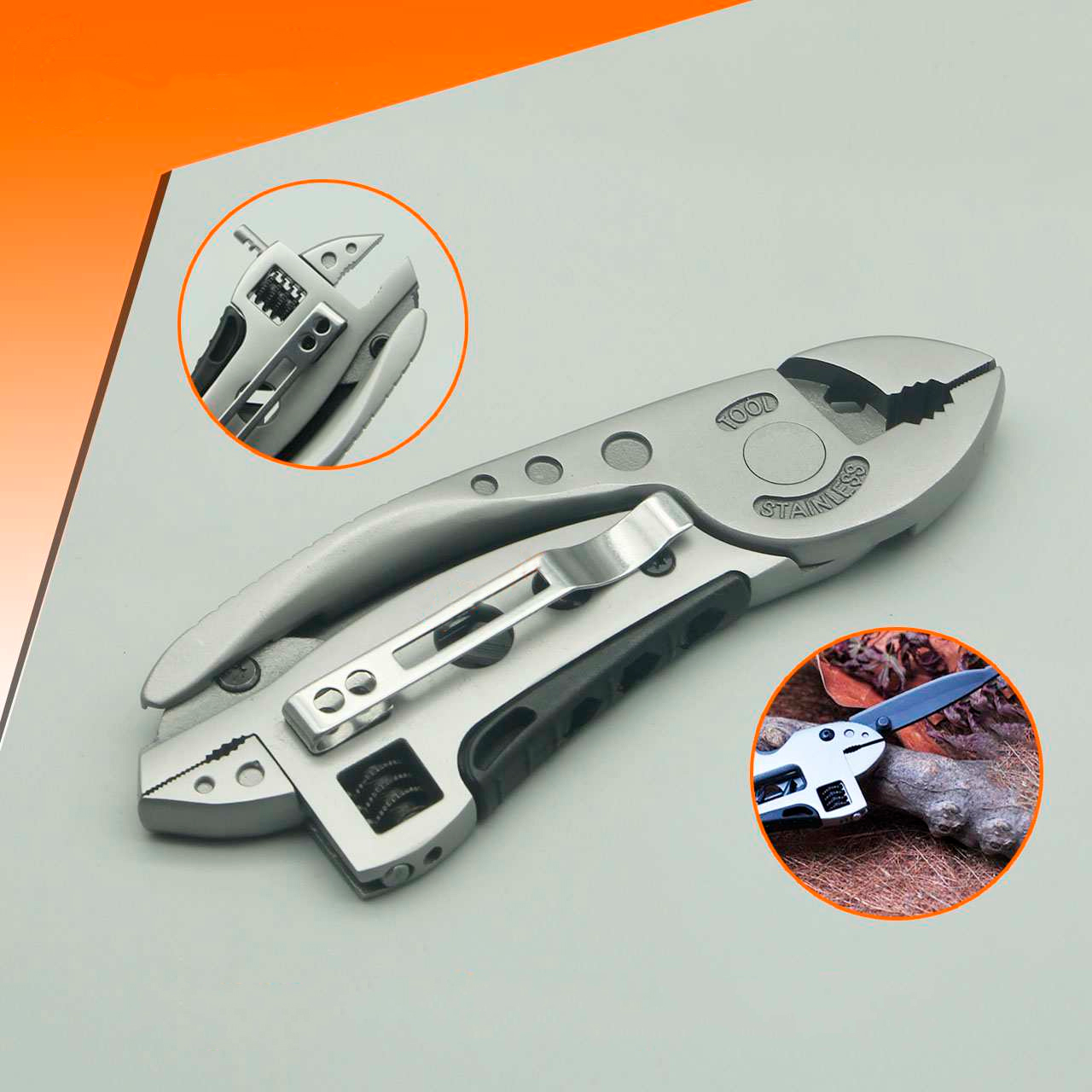 Мультитул з 9 інструментами: плоскогубцями, кусачками, плоскою викруткою, хрестоподібної викруткою, гайковим ключем, ножем, легкою конструкцією і знімним кишеньковим затискачем універсальний гайковий ключ завжди під рукою і готовий до роботи.