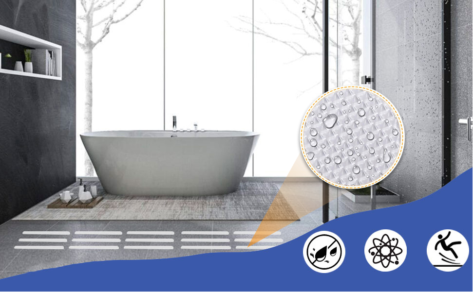 Нековзкі смуги з легкою текстурою покращують зчеплення та стійкість на гладких поверхнях. Запобігають небезпечному ковзанню та падінню.