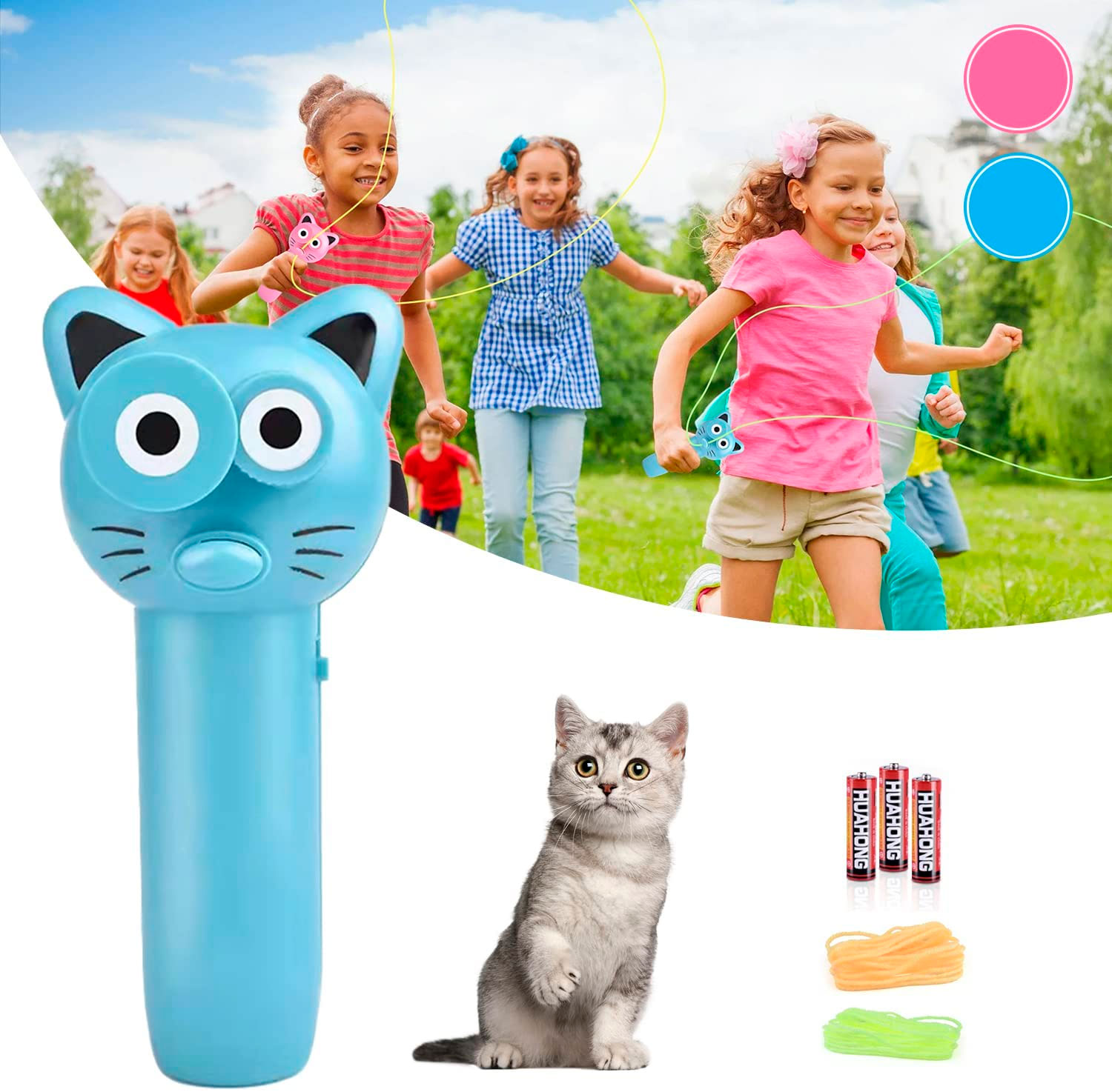 Проста у використанні, помістіть мотузку та батарейки (3 AA), дотримуючись інструкцій, показаних на картинцi, можете насолоджуватися творчою іграшкою-пускачем мотузки. (3 батарейки АА В комплект не входять)