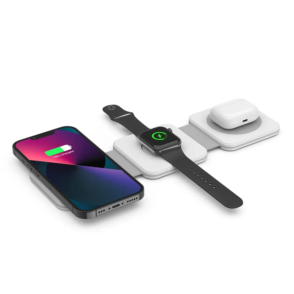 М'який силікон забезпечує плавне складання на 180°, бездротова зарядна панель перетворюється на тримач для телефону за лічені секунди. Під час зарядки телефон розташовується горизонтально для перегляду фільмів і вертикально для спілкування. Зарядна плата покрита магнітним пристроєм, який не зісковзне, навіть якщо його потрясти. Його можна використовувати в офісі, будинку, обідньому столі та спальні.