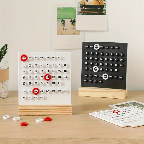 Концепція "вічного календаря", у котрому можна змінювати місяці та тижні дозволяє використовувати даний пристрій протягом років. Він не тільки слугуватиме чудовою прикрасою для вашого робочого столу чи інтер'єру, а й дозволятиме бути більш організованим та слідкувати за часом.